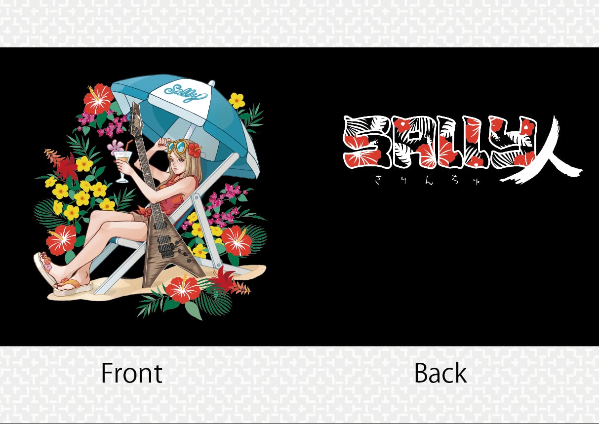 背面には沖縄のかりゆし感とSally組を表すさりんちゅがあしらわれています。